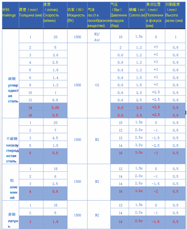 2. Расход вспомогательного газа при резке пластин будет немного отличаться;